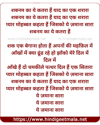 Lyrics of Shabnam Ka Ye Katra - शबनम का ये कतरा
