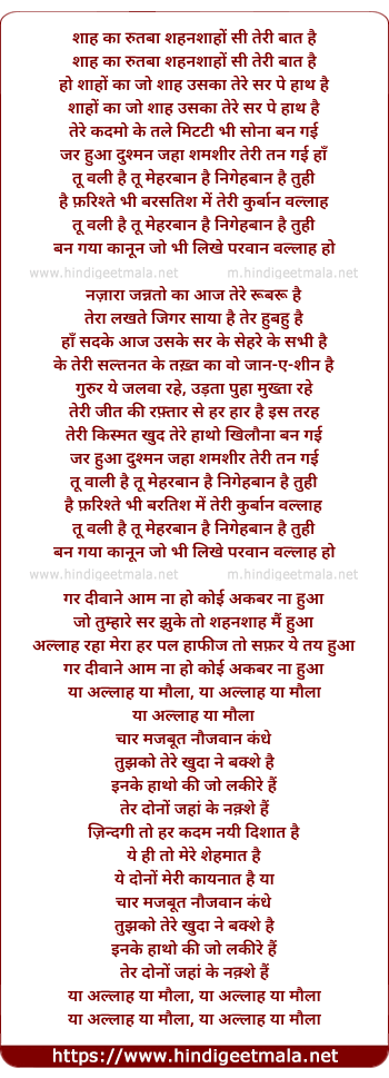 Shah Ka Rutba, Shehanshaho Si Teri Baat Hai - शाह का रुतबा, शहनशाहों सी तेरी बात है
