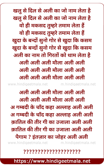 Poetic Translation - Lyrics of Shahe Marda Shere Yajda (Part - Ii) - खलु से दिल से अली का जो नाम लेता है