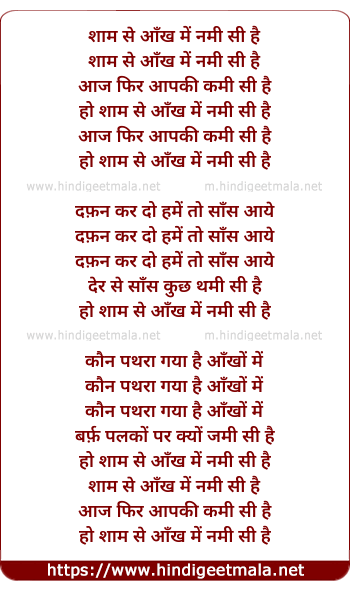 Lyrics of Sham Se Aankh Me Nami Si Hai - शाम से आँख में नमी सी है