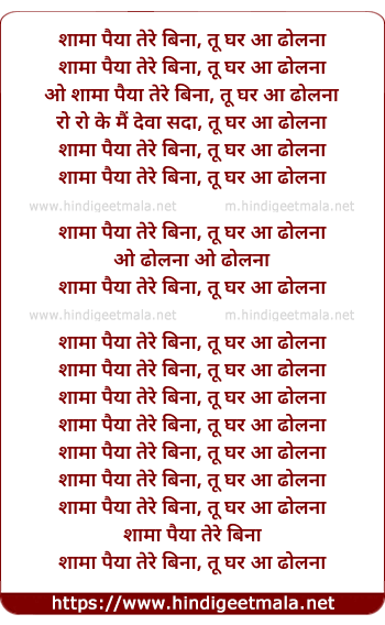 Lyrics of Shaman Paiyan Tere Bina - शामा पैया तेरे बिना, तू घर आ ढोलना