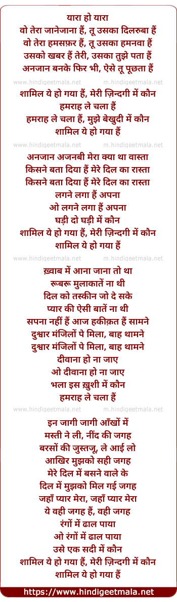 Lyrics of Shamil Ye Ho Gaya Hai - शामिल ये हो गया हैं
