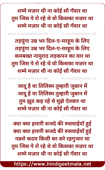 Lyrics of Shamme Mazar Thi - शम्मे मज़ार थी ना कोई सौ गँवार था