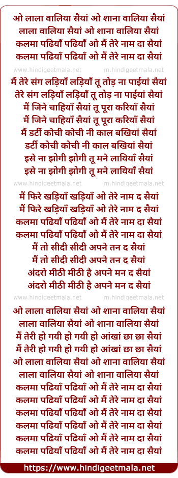 lala valiya saiyan o shana valiya saiya