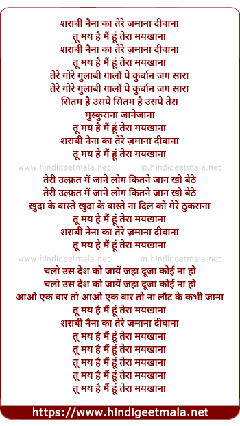 sharaabi naina ka tere zamana deewana