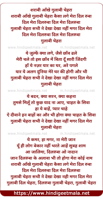dilruba dil mera, dilruba gulabi chehra, gulabi chehra