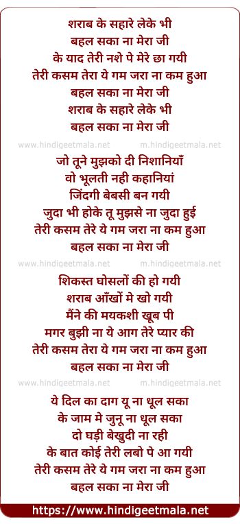 Lyrics of Sharab Ka Sahara Leke Bhi, Bahal Saka Na Mera Ji - शराब का सहारा लेके भी, बहल सका ना मेरा जी