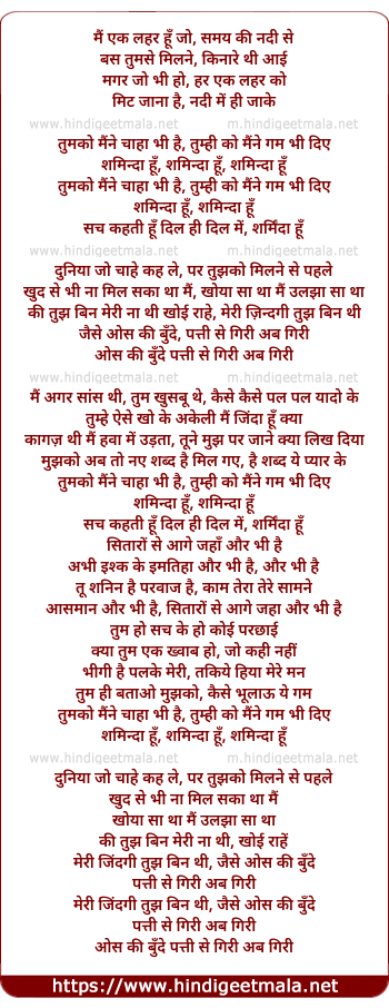 Lyrics of Sharminda Hoon - शर्मिंदा हूँ
