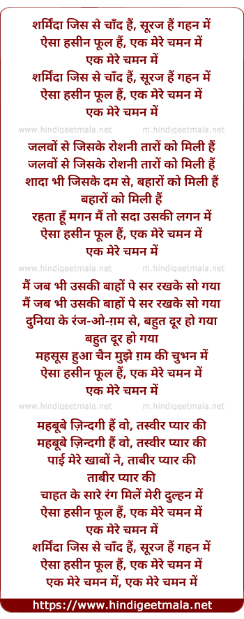 Lyrics of Sharminda Jis Se Chand - शर्मिंदा जिस से चाँद