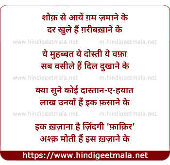 Lyrics of Shauk Se Aaye Gam Zamane Ke - शौक़ से आयें ग़म ज़माने के