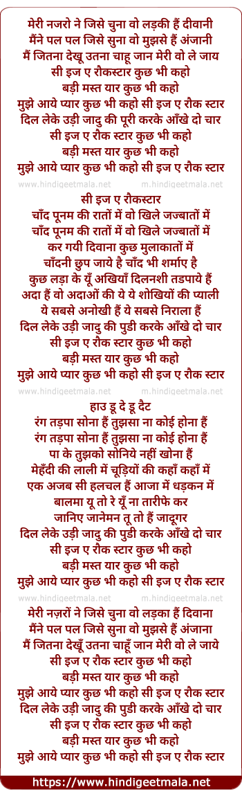 Lyrics of She Is A Rockstar Kuchh Bhee Kaho - सी इज ए रौकस्टार कुछ भी कहो