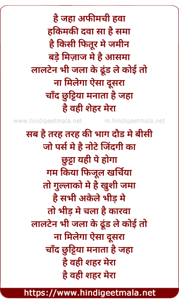 Lyrics of Shahar Meraa - शहर मेरा