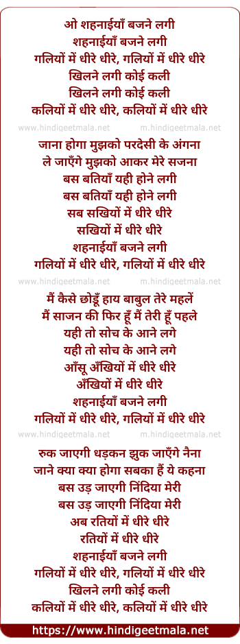 Lyrics of Shehnaiya Bajne Lagi - शहनाईयाँ बजने लगी