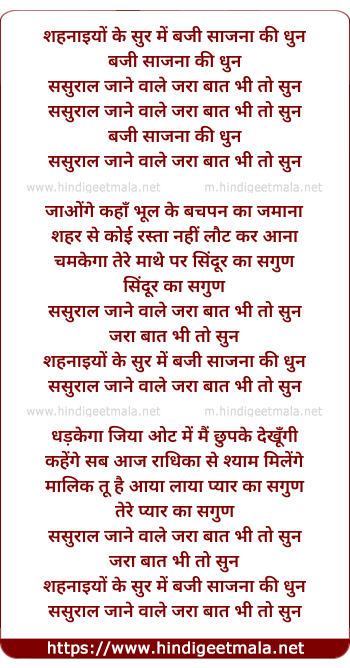 Lyrics of Shehnaiyo Ke Sur Me Baji Sajna Ki Dhun - शहनाइयों के सुर में बजी सजना की धुन