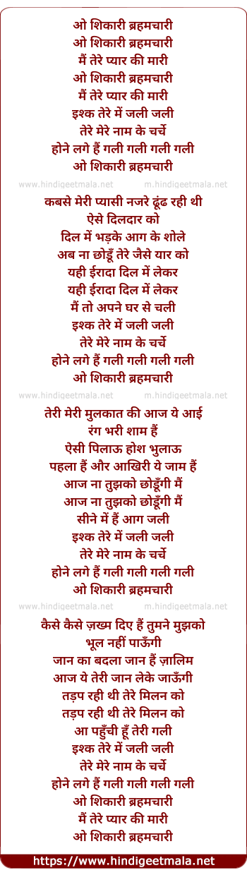 Lyrics of Shikari Brahamchari - शिकारी ब्रहमचारी