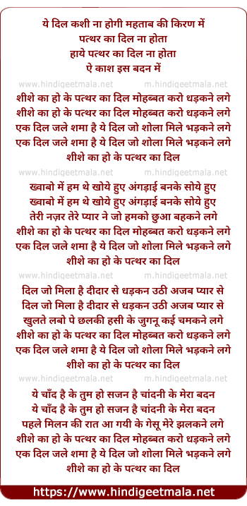 Lyrics of Shishe Ka Ho Ya Patthar Ka Dil - शीशे का हो या पत्थर का दिल