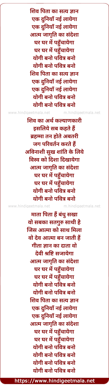 Lyrics of Shiv Pita Ka Satya Gya - शिव पिता का सत्य ज्ञान