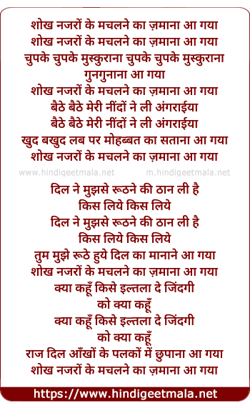 Lyrics of Shokh Nazro Ke Machalne Ka Zamana Aa Gaya - शोख नजरों के मचलने का ज़माना आ गया
