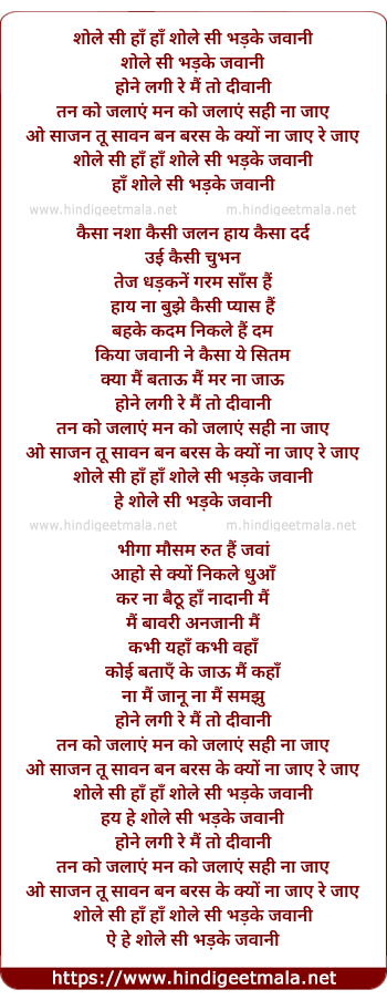 Poetic Translation - Lyrics of Shole Si Bhadke Jawani - शोले सी भड़के जवानी