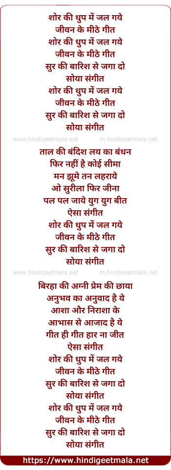Lyrics of Shor Ki Dhup - शोर की धुप में जल गये
