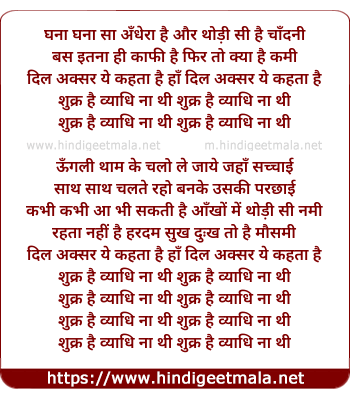 Lyrics of Shukar Hai Vyaadhi Nathi - शुक्र है व्याधि नाथी