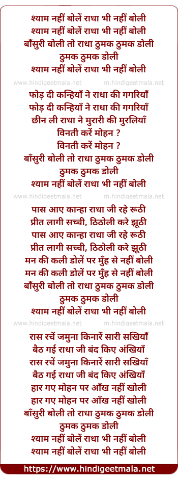 Lyrics of Shyam Nahi Bole Radha Bhi Nahi Boli - श्याम नहीं बोलें राधा भी नहीं बोली