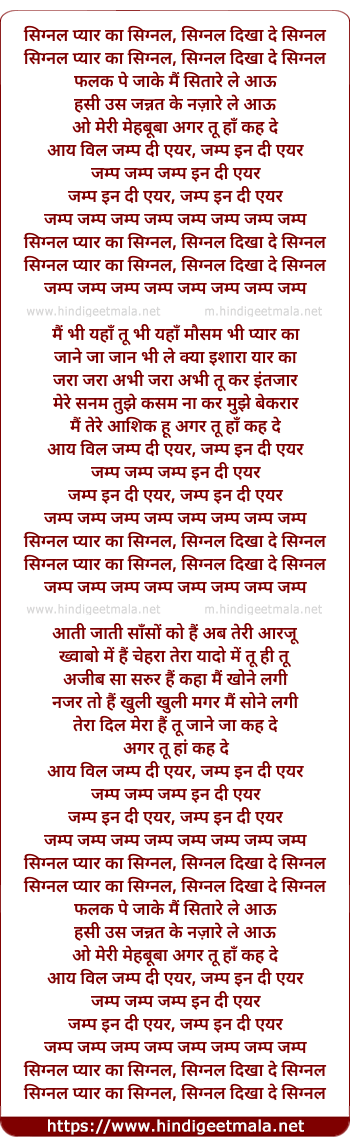 Lyrics of Signal Pyar Ka, Signal Dikha De Signal - सिग्नल प्यार का सिग्नल, सिग्नल दिखा दे सिग्नल