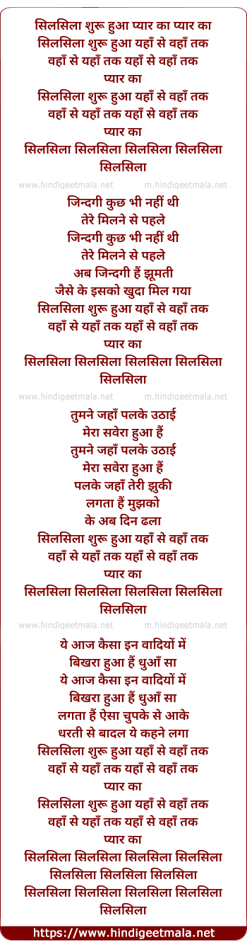 Lyrics of Silsila Shuru Hua Pyar Ka - सिलसिला शुरू हुआ प्यार का
