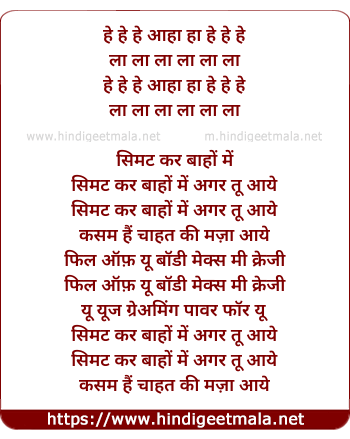 Lyrics of Simat Kar Baaho Me (Remix) - हे हे हे आहा हा हे हे हे