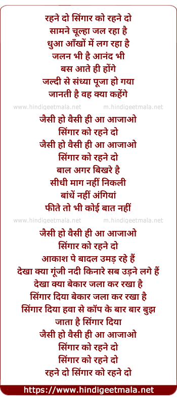 Lyrics of Singaar Ko Rehne Do - रहने दो सिंगार को रहने दो