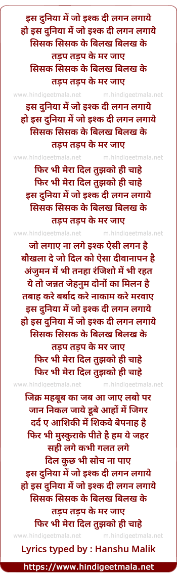 iss duniya me jo ishq di lagan lagaye
