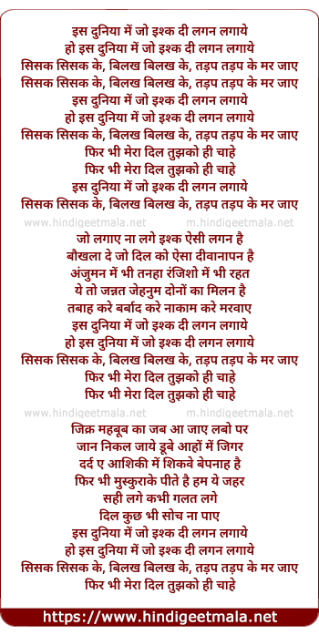 Poetic Translation - Lyrics of Sisak Sisak Ke (Remix) - इस दुनिया में जो इश्क दी लगन लगाये