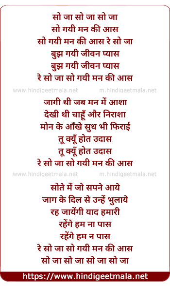 Lyrics of So Gayi Man Ki Aas Re - सो जा सो जा सो जा