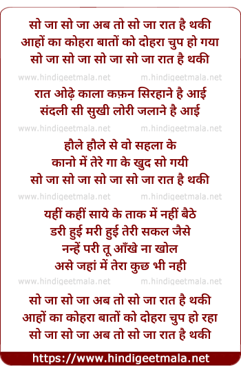 so ja so ja ab to so ja raat hai thaki