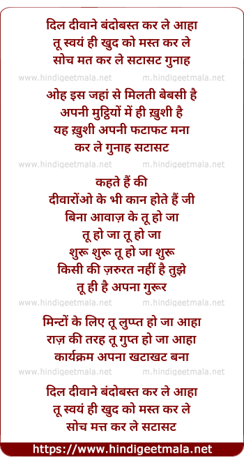 dil diwane bandobast kar le aha