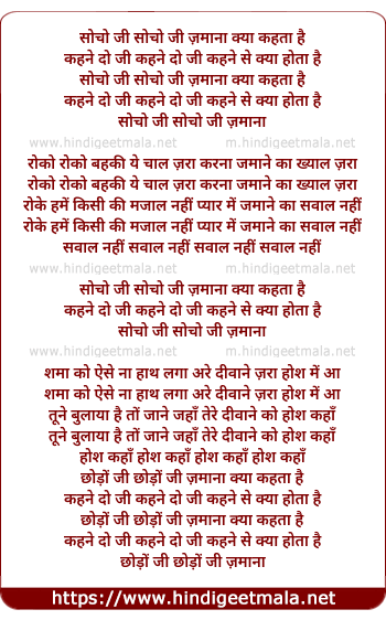Lyrics of Socho Ji Socho Ji Zamana Kya Kahta Hai - सोचो जी सोचो जी ज़माना क्या कहता है