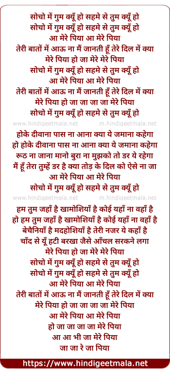 Lyrics of Socho Me Gum Kyu Ho - सोचो में गुम क्यूँ हो सहमे से तुम क्यूँ हो