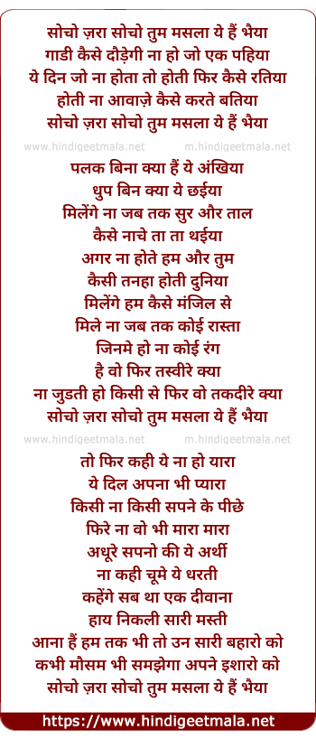 Lyrics of Socho Zara Socho Tum - सोचो ज़रा सोचो तुम मसला ये हैं भैया