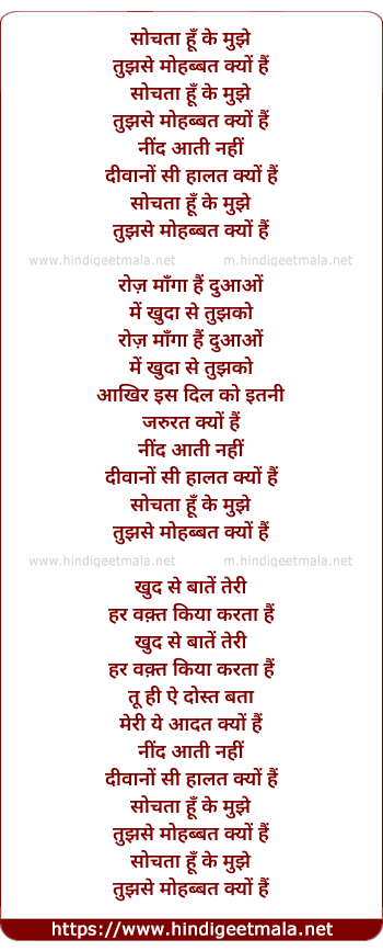 Lyrics of Sochta Hun Ke Mujhe - सोचता हूँ के मुझे