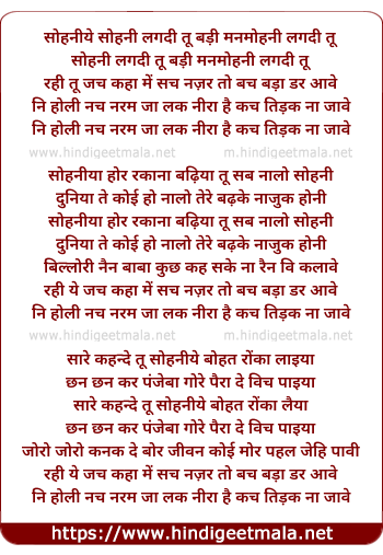 Lyrics of Sohni Lagdi Tu, Badi Man Mohni Lagdi Tu - सोहनीये सोहनी लगदी तू बड़ी मनमोहनी लगदी तू
