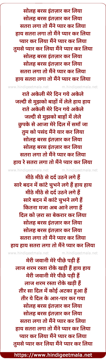 Lyrics of Solah Baras Intezar Kar Liya - सोलह बरस इंतज़ार कर लिया