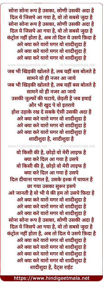 Lyrics of Sona Sona Rup Hai Usaka - सोना सोना रूप है उसका