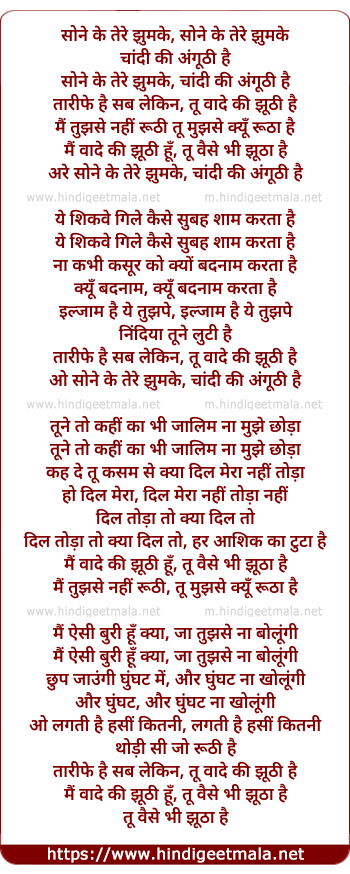 Lyrics of Sone Ke Tere Jhumke Chandi Ki Anguthi Hai - सोने के तेरे झुमके चाँदी की अंगूठी है