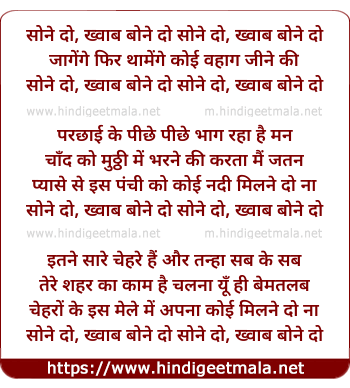Lyrics of Soney Do Khwaab Bone Do - सोने दो ख्वाब बोने दो