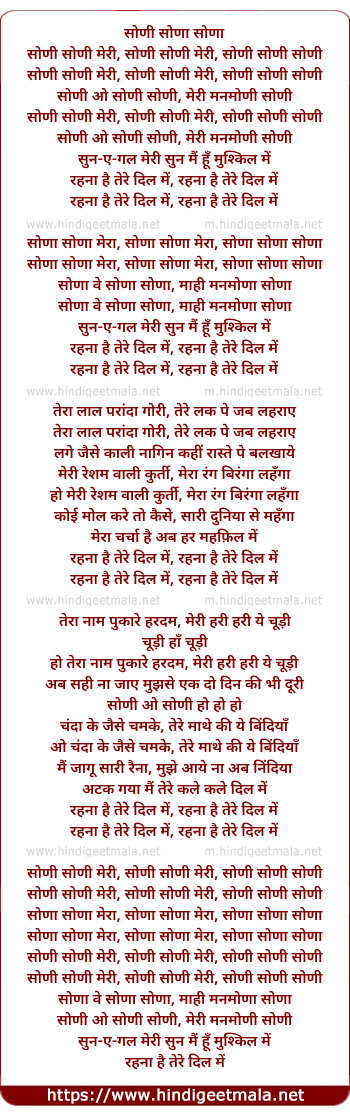 Lyrics of Soni Soni - सोणी सोणी
