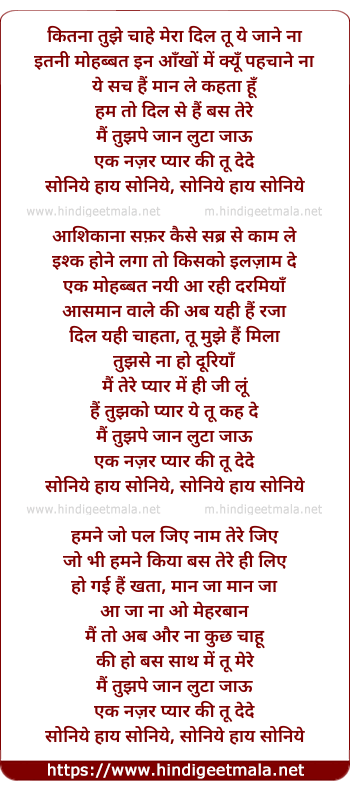 Lyrics of Soniye (Remix) - कितना तुझे चाहे मेरा दिल तू ये जाने ना