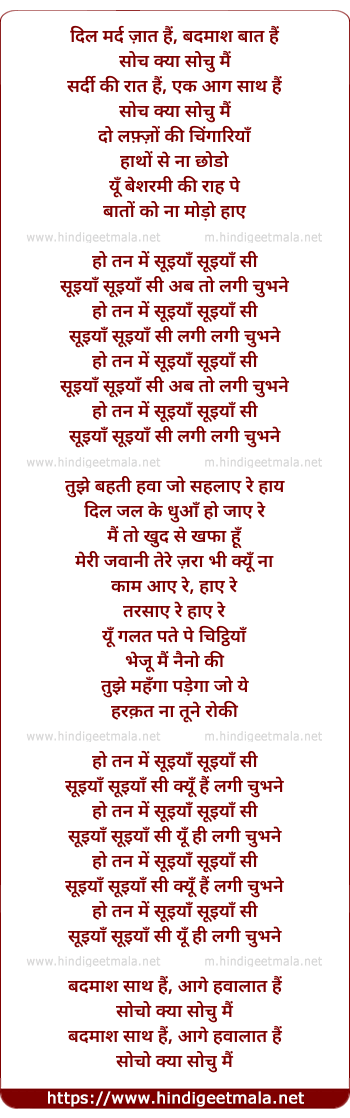 Lyrics of Sooiyan Sooiyan Si - सूइयाँ सूइयाँ सी