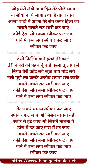 Lyrics of Speaker Phat Jaye - स्पीकर फट जाए