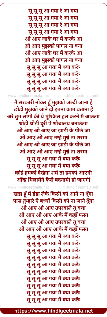 Lyrics of Su Su Su Aa Gaya Re Aa Gya - सू सू सू आ गया रे आ गया