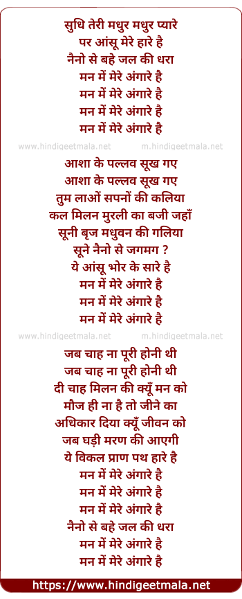 Lyrics of Sudhi Teri Madhur Madhur Pyare - सुधि तेरी मधुर मधुर प्यारे